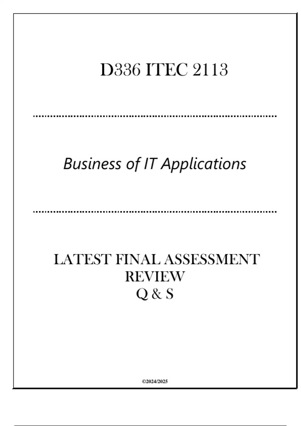 (D366) ITEC 2113 Business f IT Applications - Latest FA Review Q & S 2024(D366) ITEC 2113 Business f IT Applications - Latest FA Review Q & S 2024(D366) ITEC 2113 Business f IT Applications - Latest FA Review Q & S 2024(D366) ITEC 2113 Business f IT Applications - Latest FA Review Q & S 2024