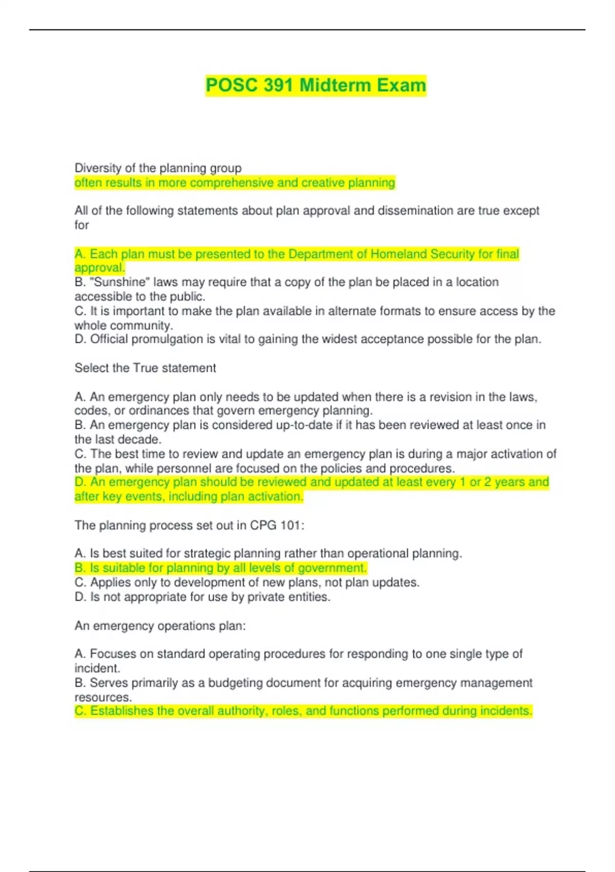 D. An emergency plan should be reviewed and updated at least every 1 or 2 years and