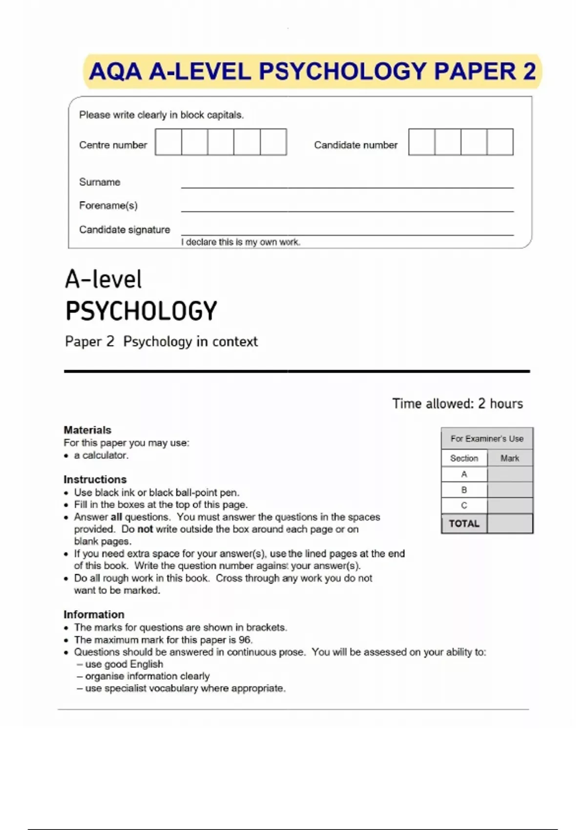 - AQA A-LEVEL PSYCHOLOGY PAPER 2