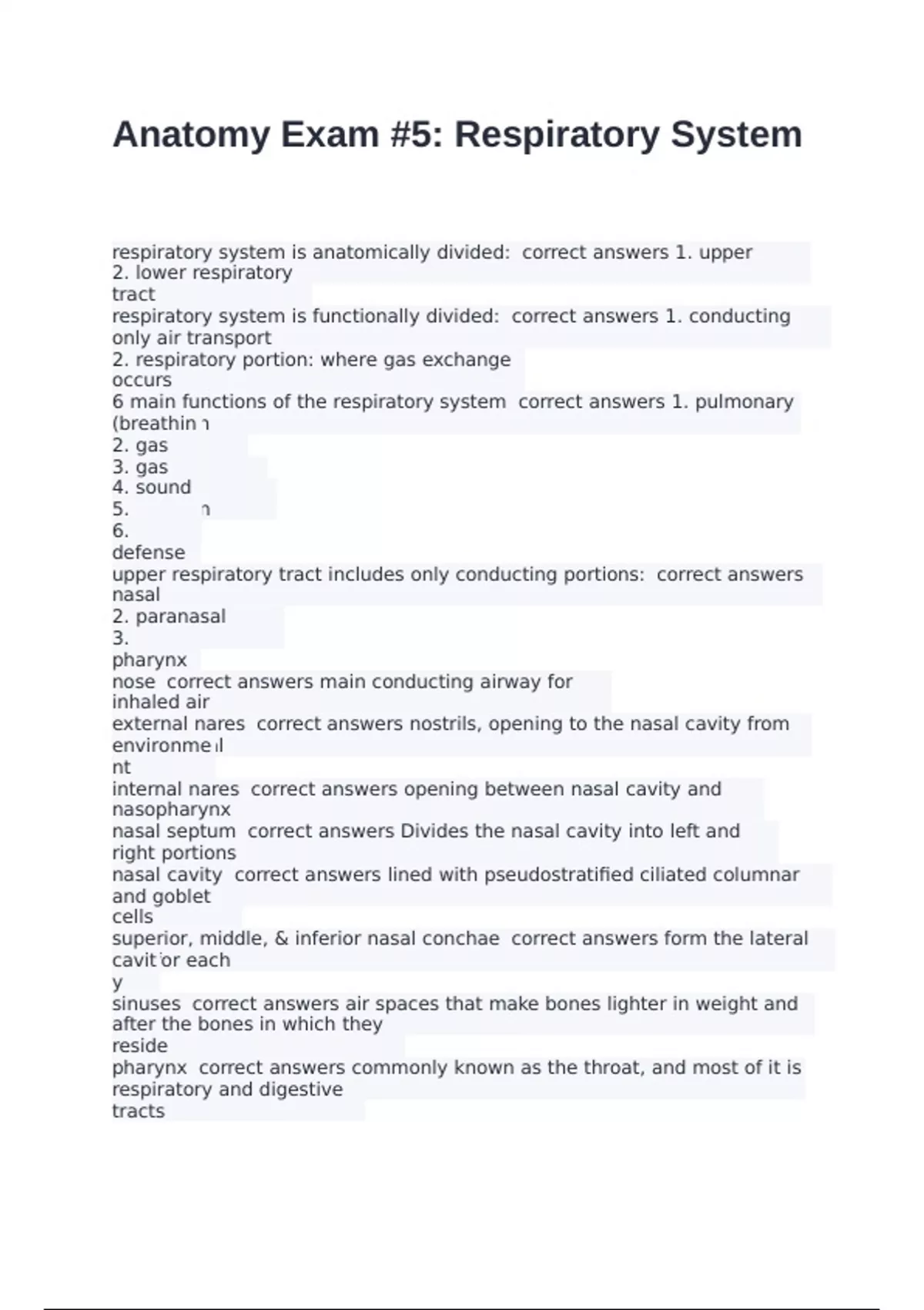 6 main functions of the respiratory system correct answers 1. pulmonary
