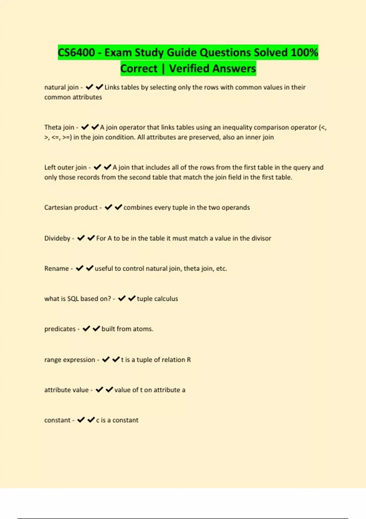 CS6400 - Exam Study Guide Questions Solved 100%