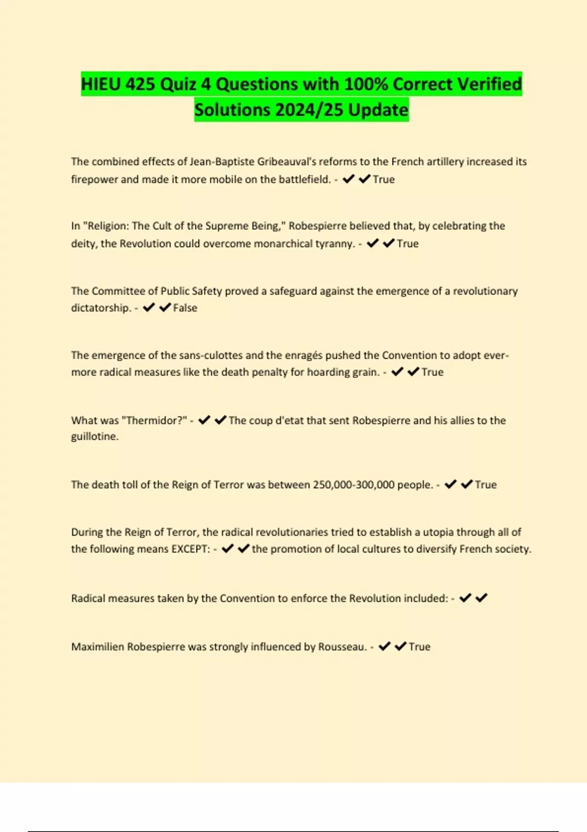 The death toll of the Reign of Terror was between 250,000-300,000 people. - ✔✔True
