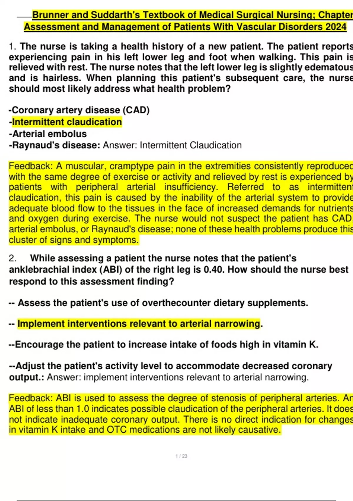 Feedback: ABI is used to assess the degree of stenosis of peripheral arteries. An