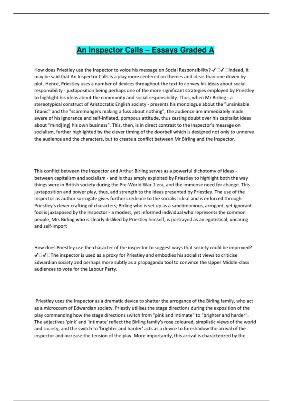 ✔️✔️The inspector is used as a proxy for Priestley and embodies his socialist views to criticise