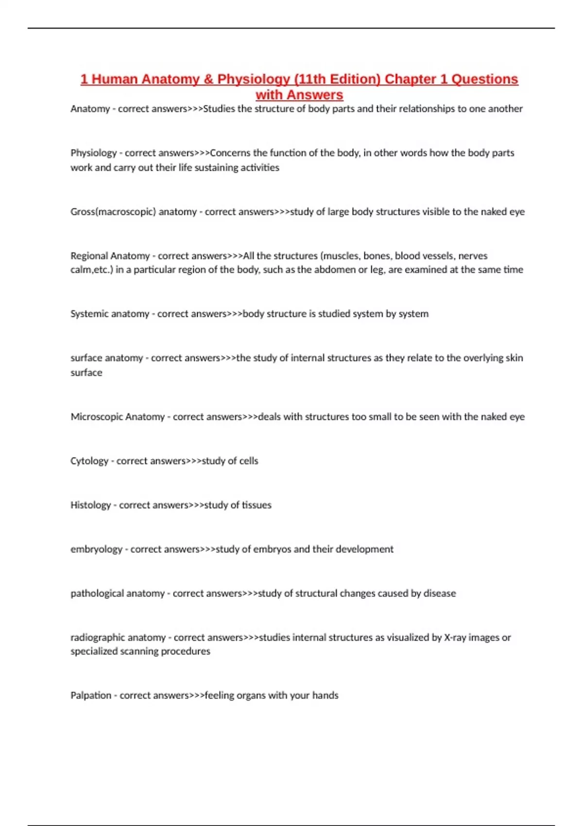 Physiology - correct answers>>>Concerns the function of the body, in other words how the body parts