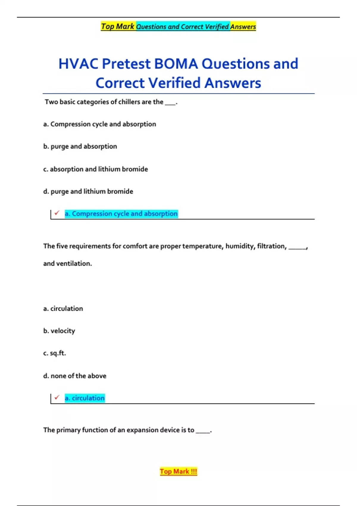HVAC Pretest BOMA Questions and Correct Verified Answers