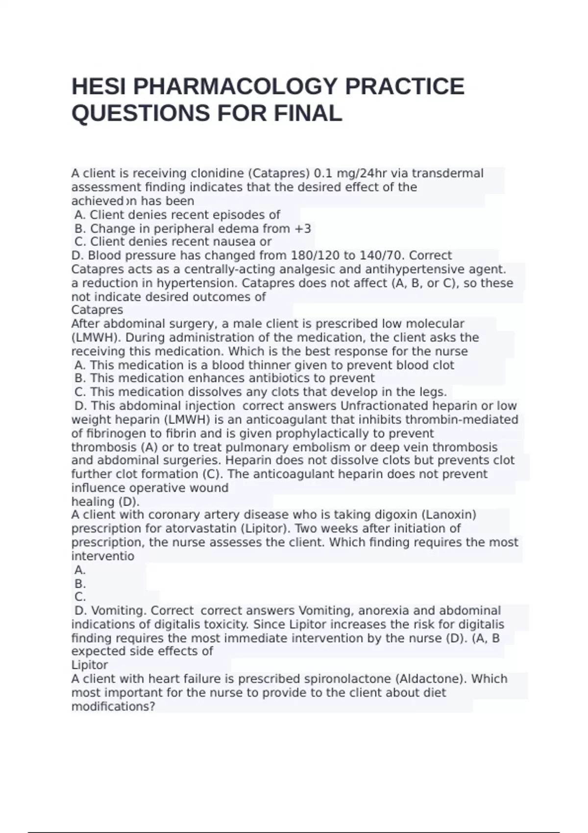 blocker (ARB), for a client with hypertension and heart failure. The nurse