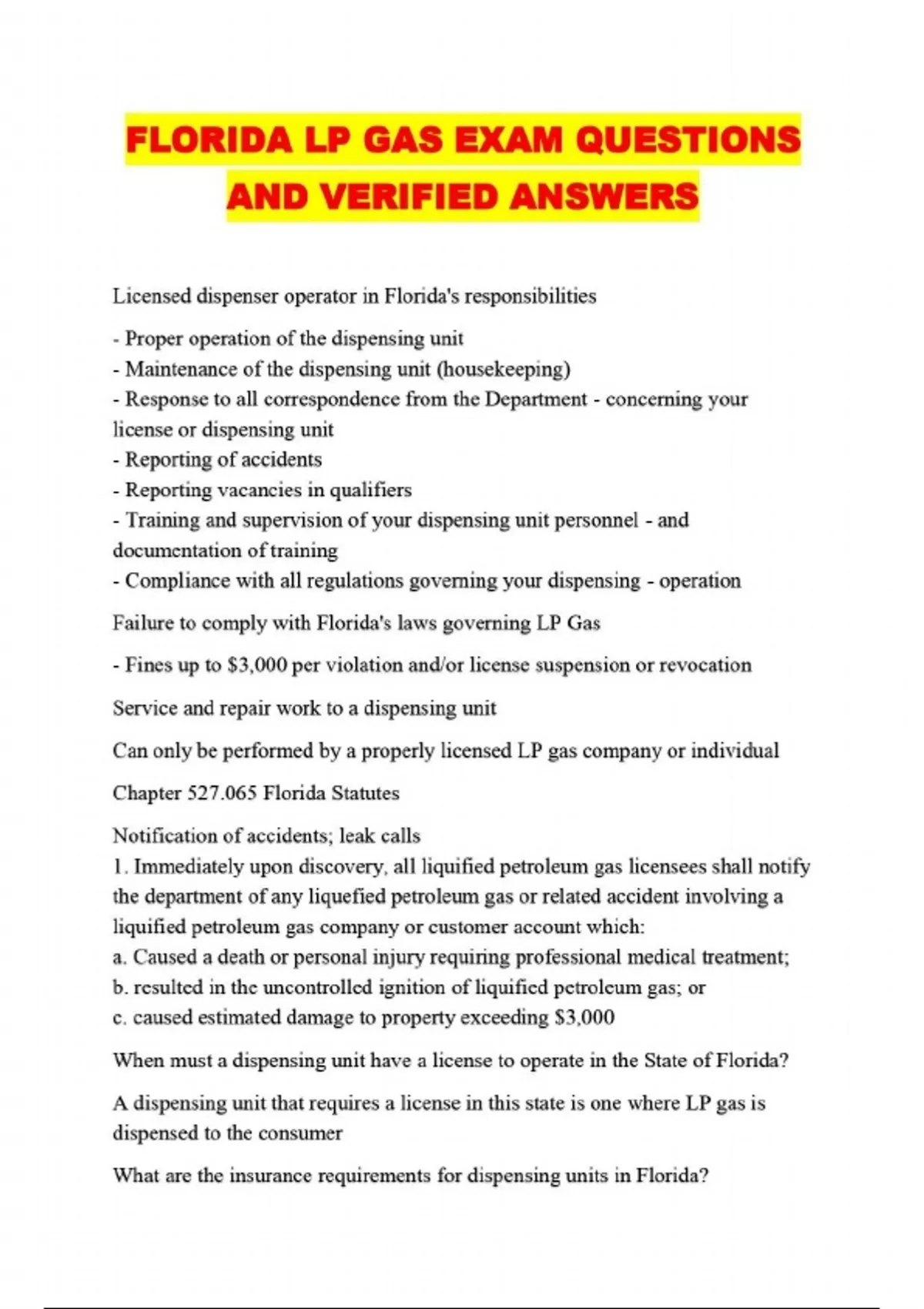 FLORIDA LP GAS EXAM QUESTIONS AND VERIFIED ANSWERS...