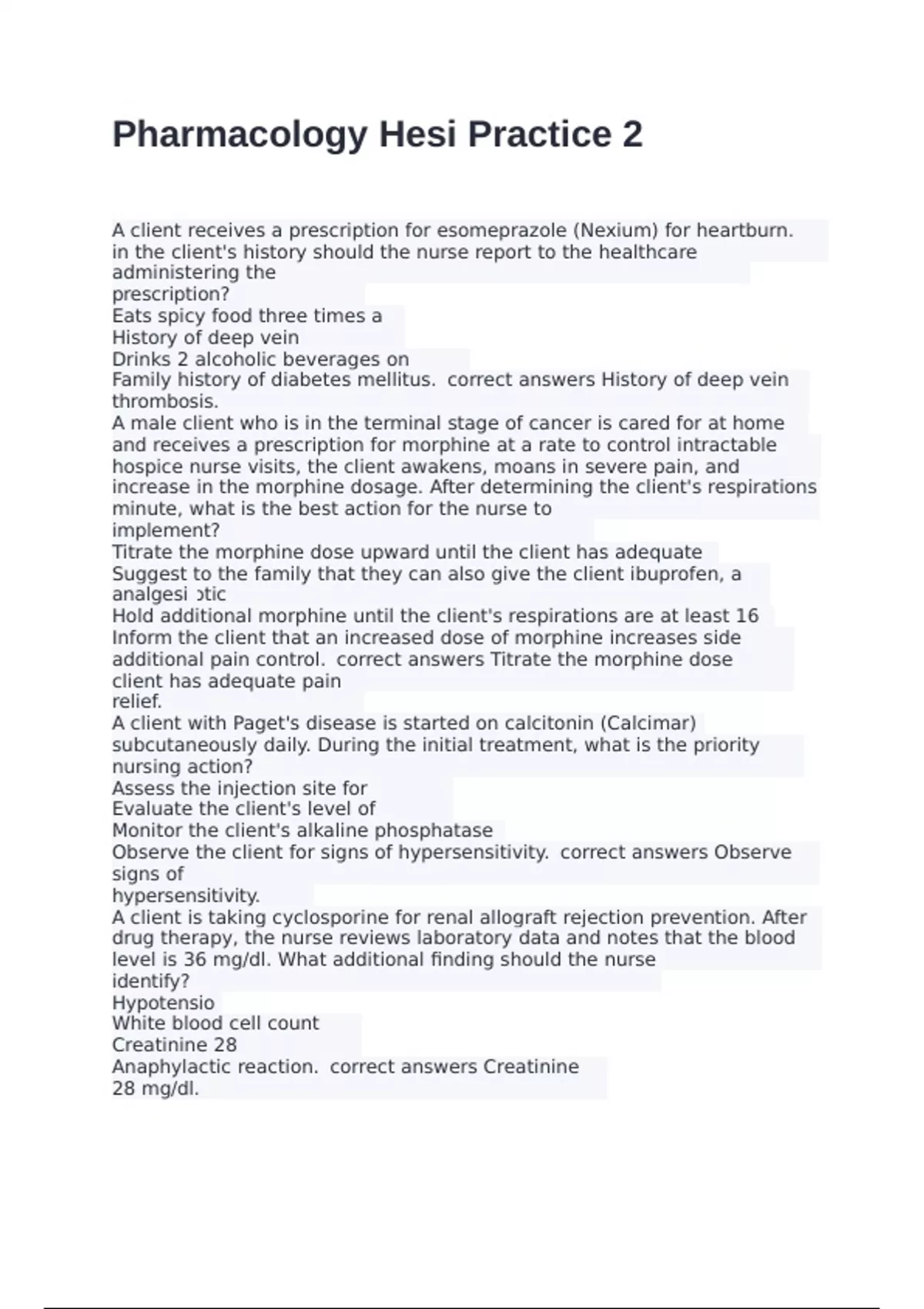 Anaphylactic reaction. correct answers Creatinine
