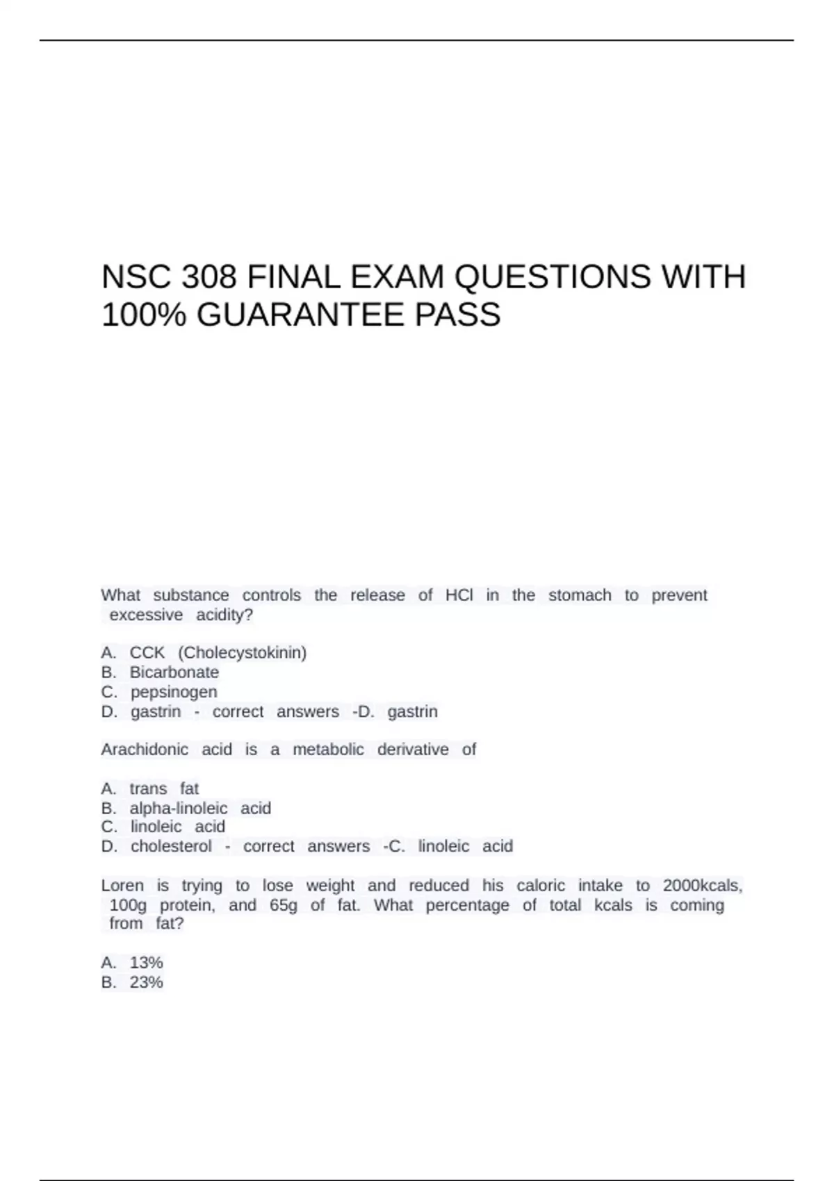 NSC 308 FINAL EXAM QUESTIONS WITH