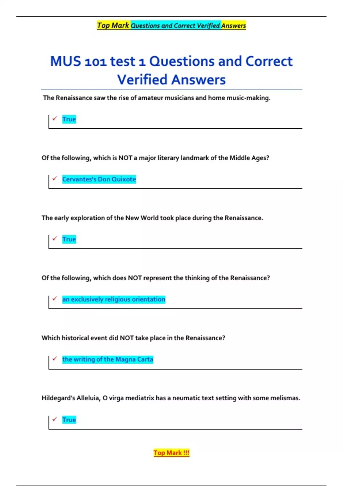 , Top Mark Questions and Correct Verified Answers