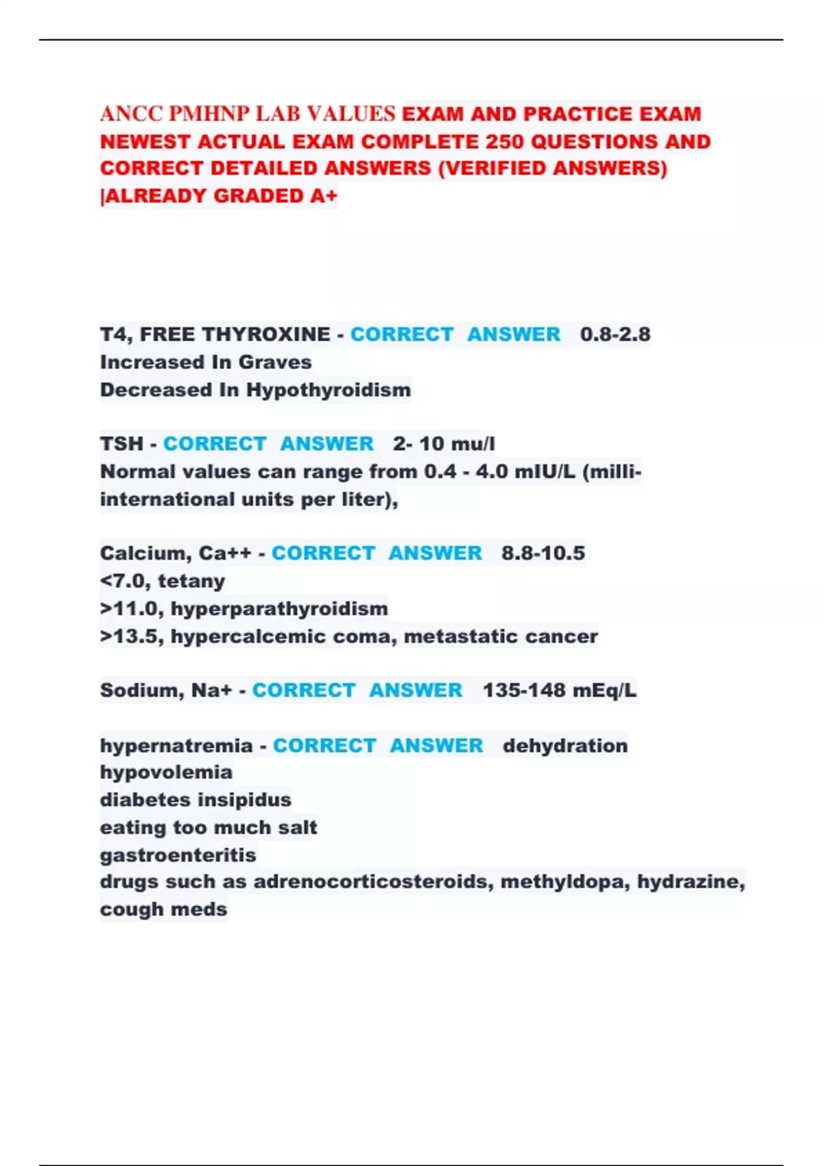 TSH - CORRECT ANSWER 2- 10 mu/l