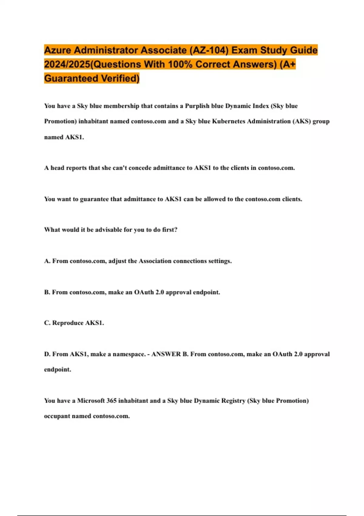 D. From AKS1, make a namespace. - ANSWER B. From contoso.com, make an OAuth 2.0 approval