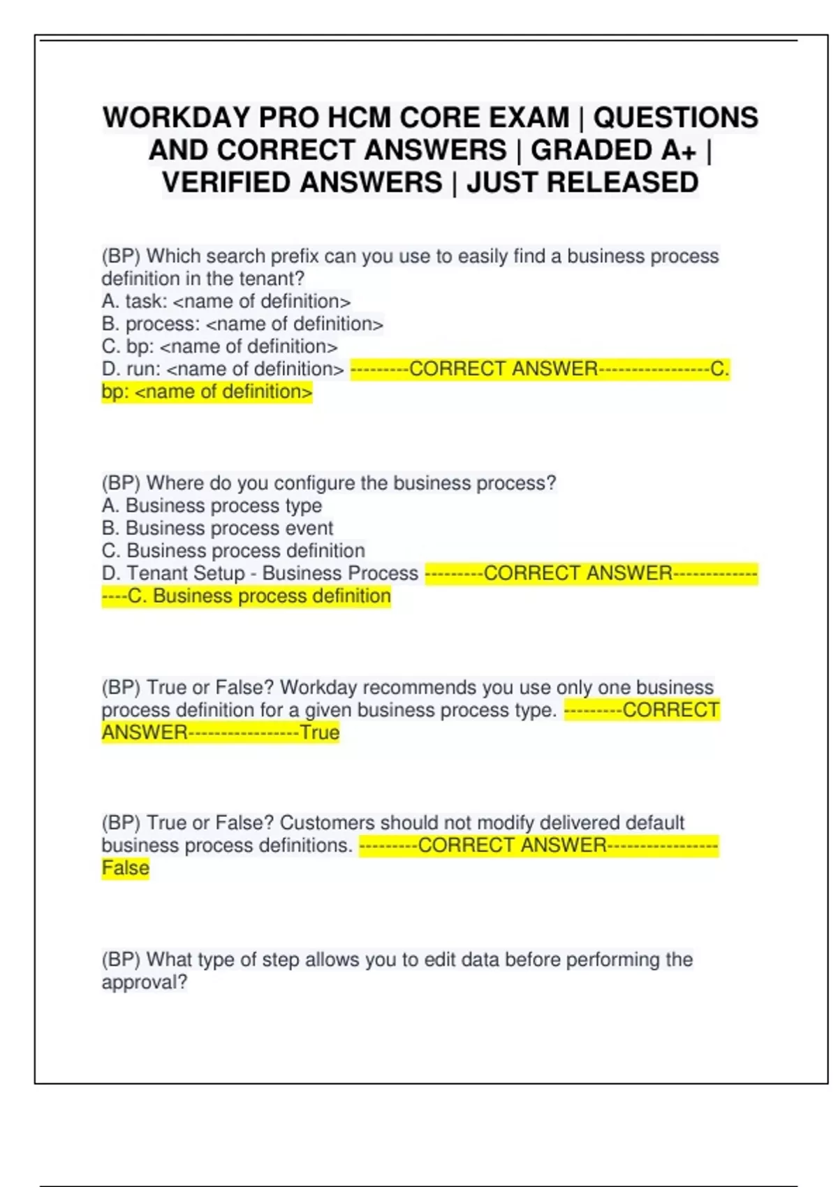 process definition for a given business process type. ---------CORRECT
