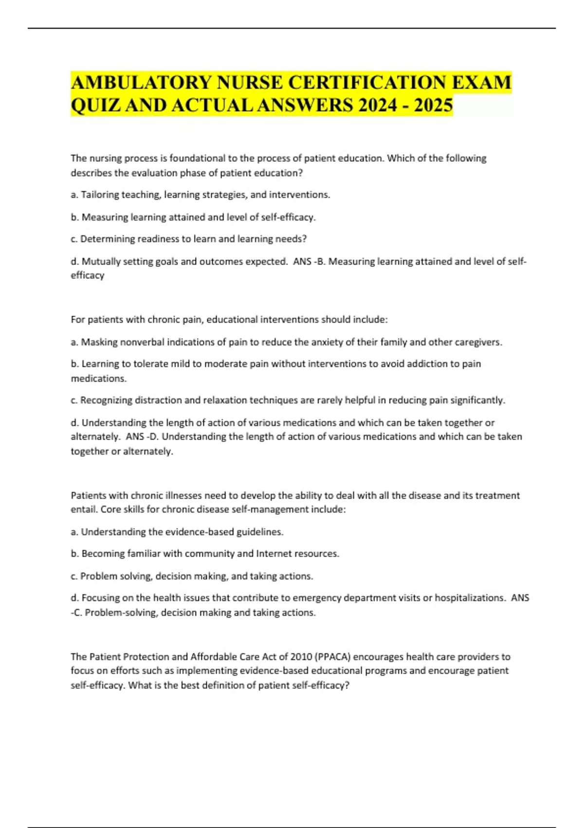 AMBULATORY NURSE CERTIFICATION EXAM QUIZ AND ACTUAL ANSWERS