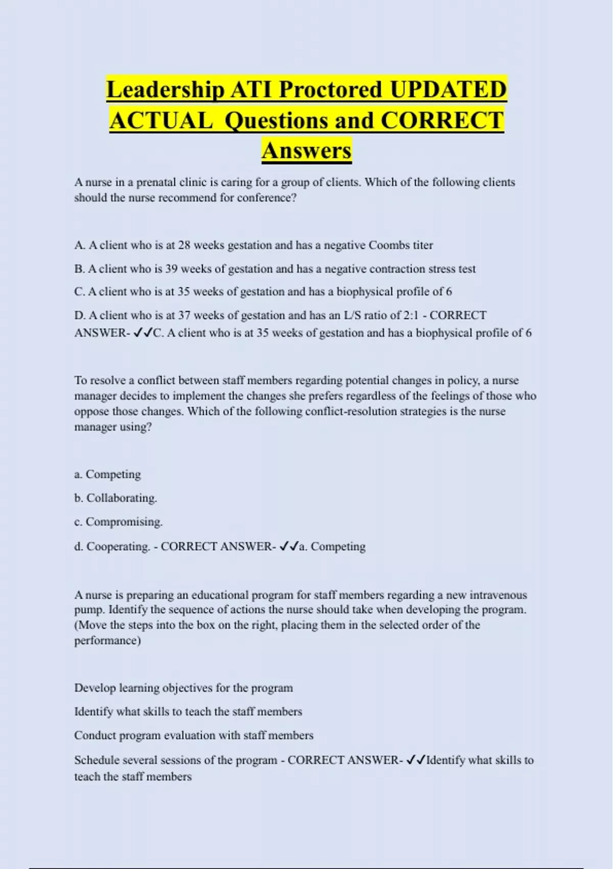 Leadership ATI Proctored UPDATED ACTUAL Questions and CORRECT Answers