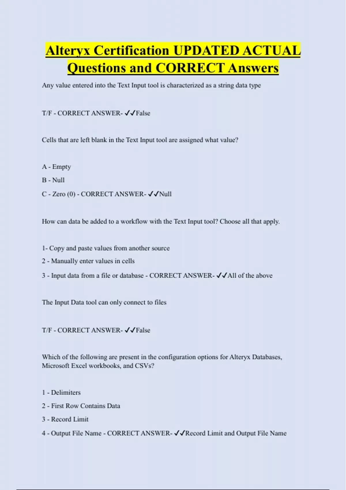 Questions and CORRECT Answers