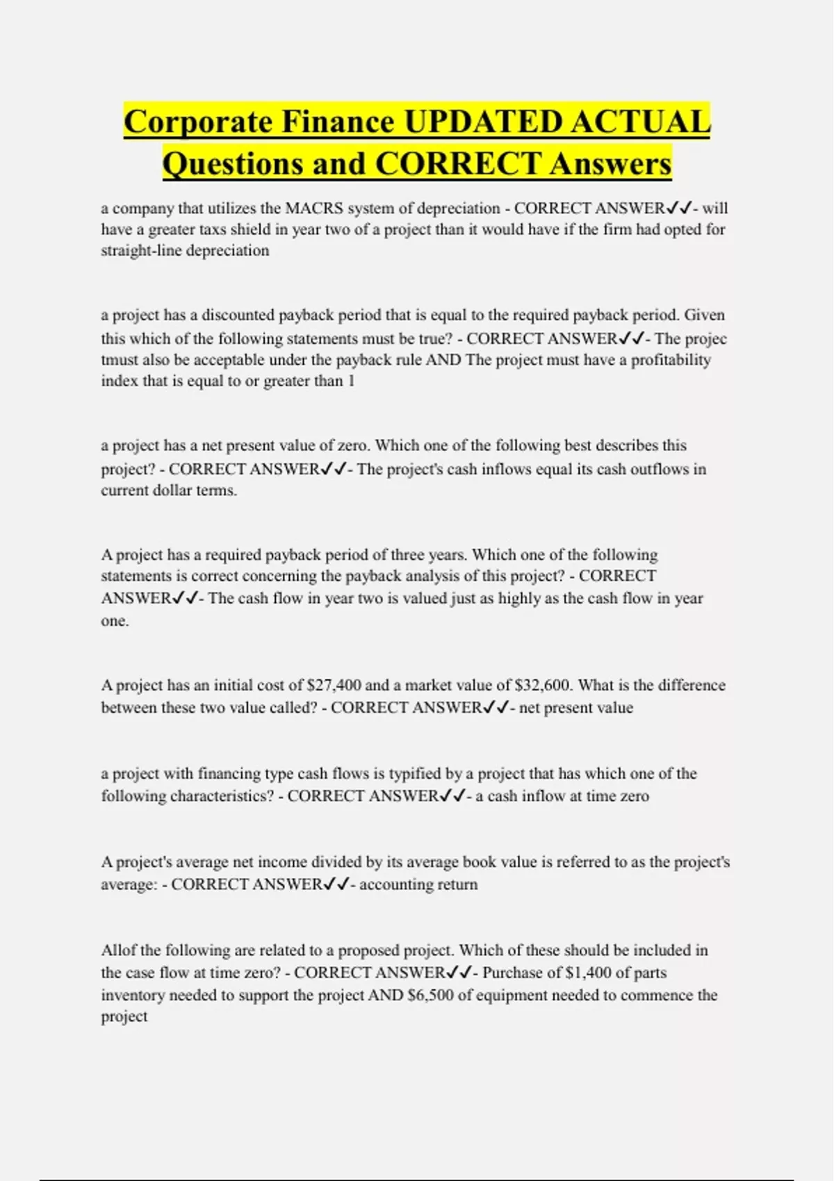Questions and CORRECT Answers