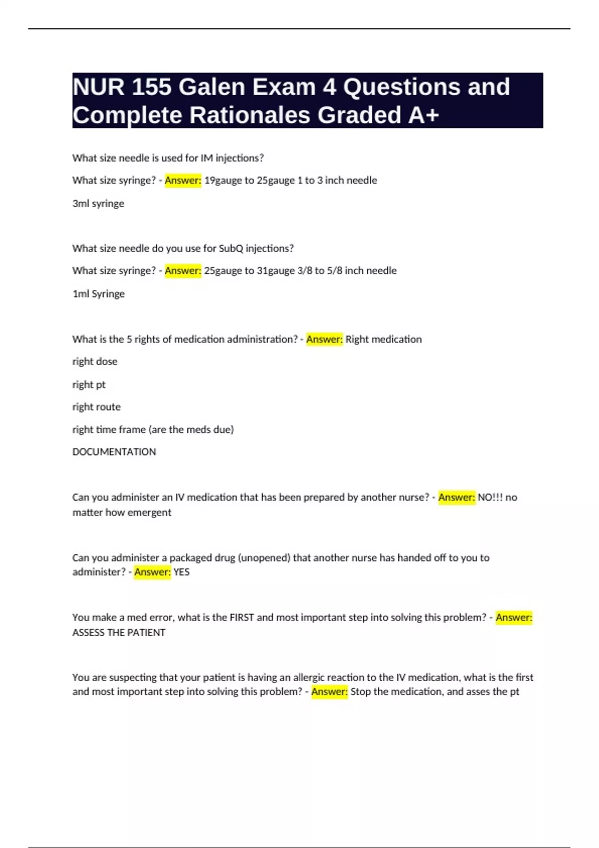 Complete Rationales Graded A+