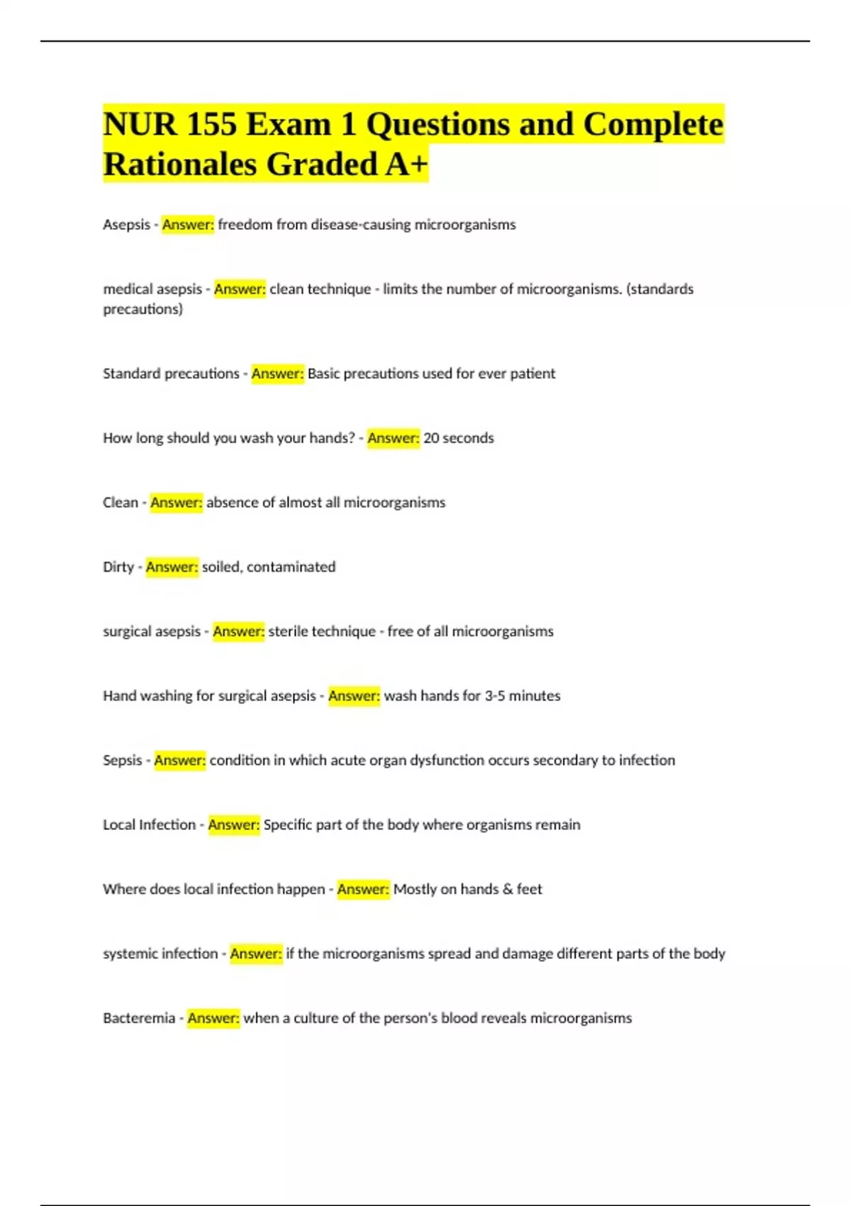 NUR 155 Exam 1 Questions with Complete Rationales Graded A+