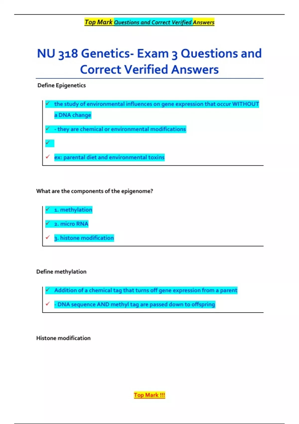 , Top Mark Questions and Correct Verified Answers