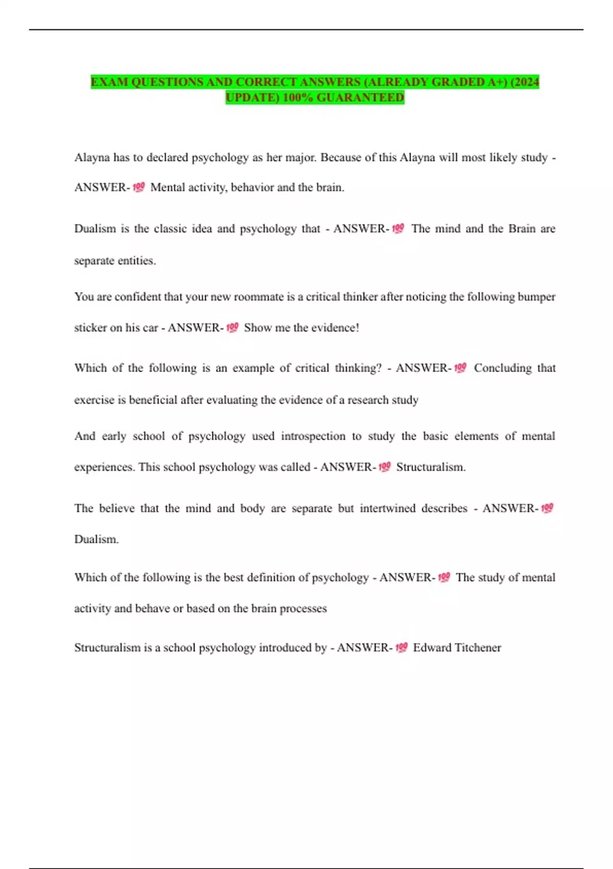 Dualism is the classic idea and psychology that - ANSWER- The mind and the Brain are