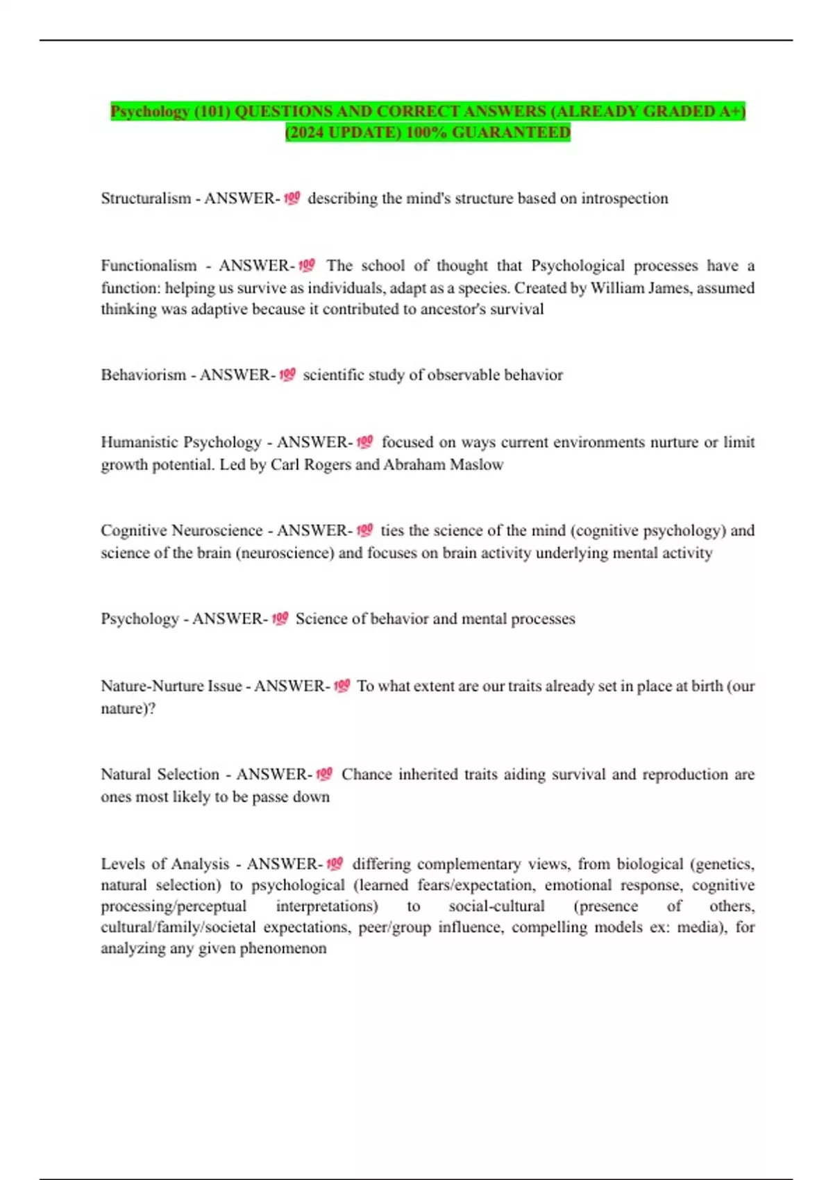 Psychology - ANSWER- Science of behavior and mental processes