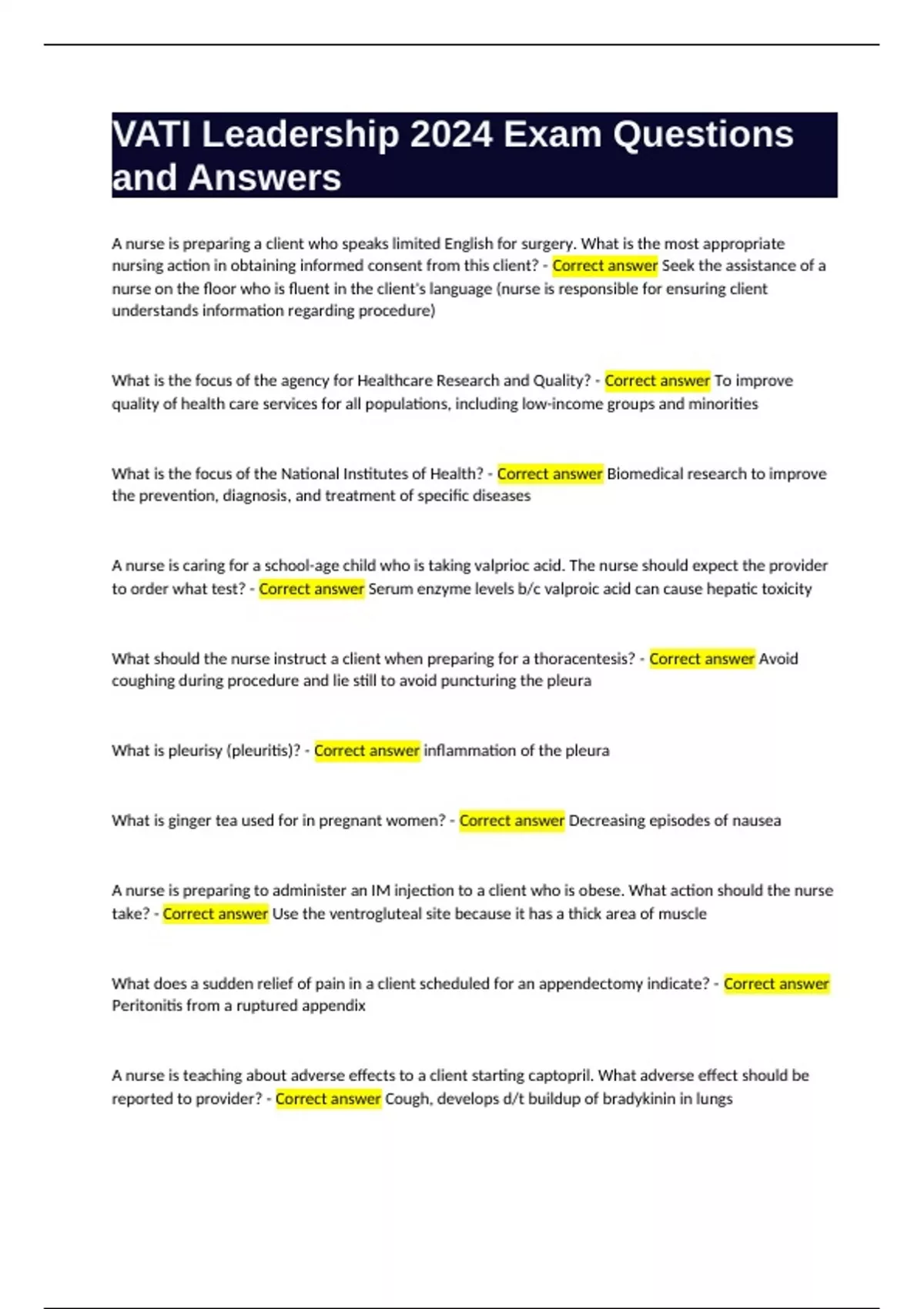 to order what test? - Correct answer Serum enzyme levels b/c valproic acid can cause hepatic toxicity