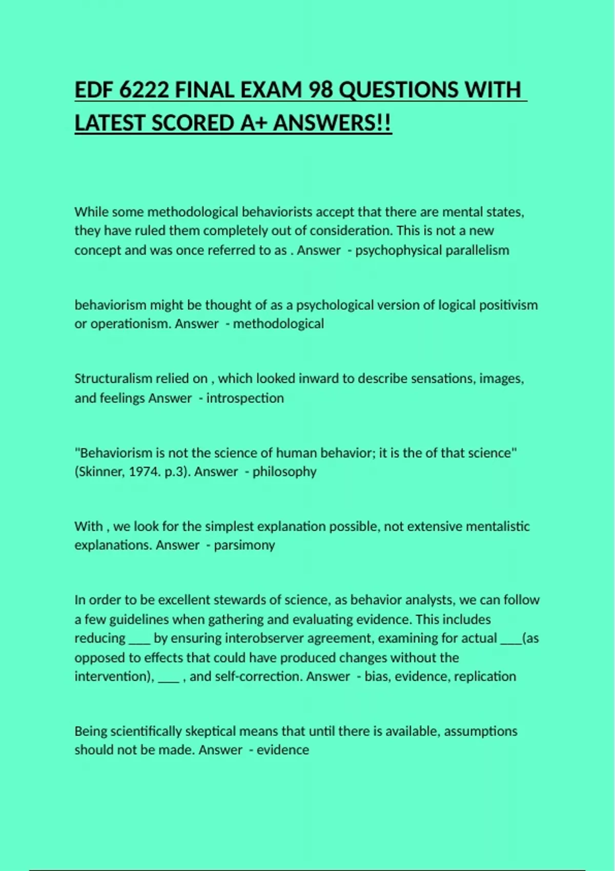 EDF 6222 FINAL EXAM 98 QUESTIONS WITH LATEST SCORED A+ ANSWERS!!