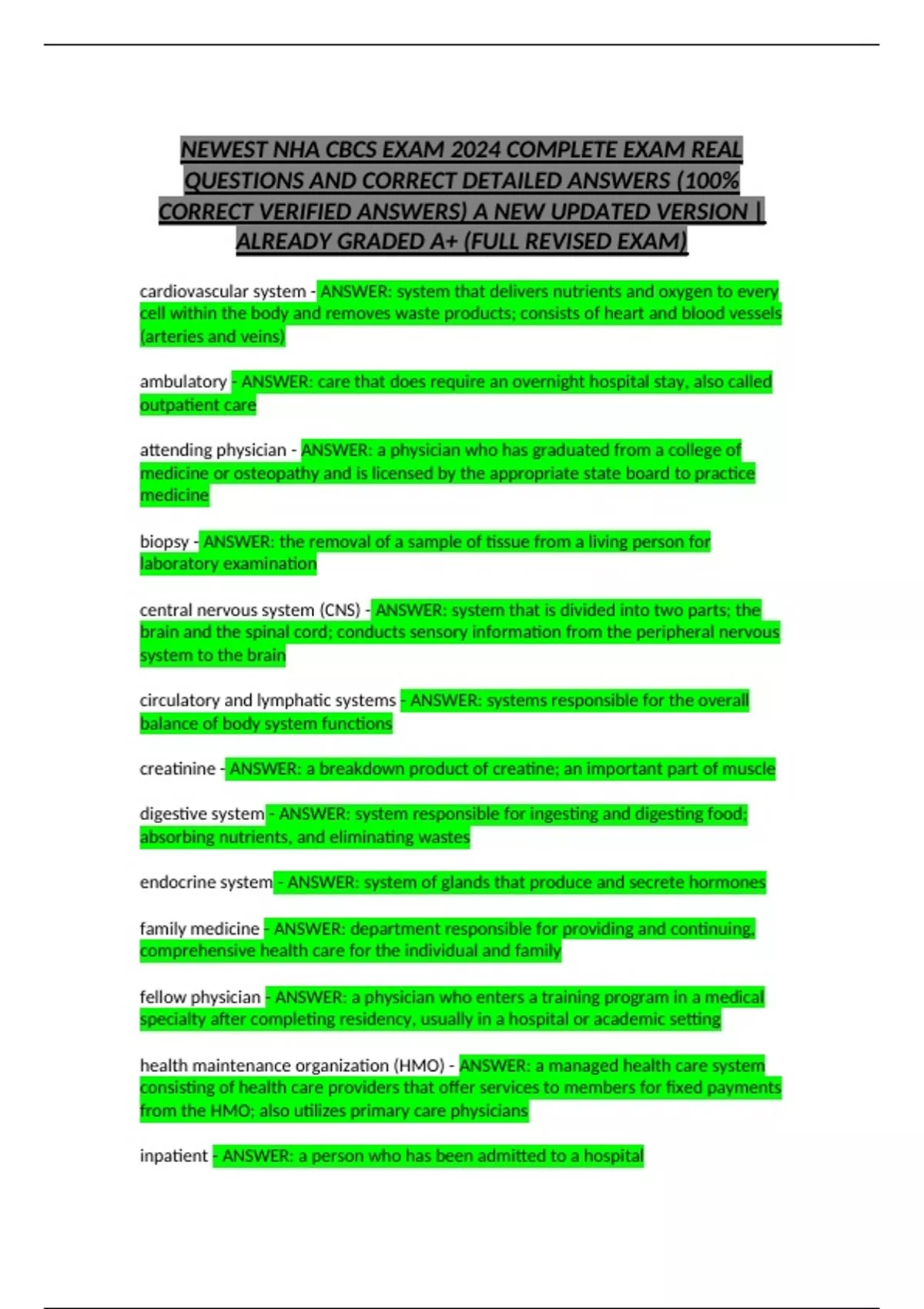 NEWEST NHA CBCS EXAM 2024 COMPLETE EXAM REAL QUESTIONS AND CORRECT DETAILED ANSWERS (100% CORRECT VERIFIED ANSWERS) A NEW UPDATED VERSION |ALREADY GRADED A+ (FULL REVISED EXAM)