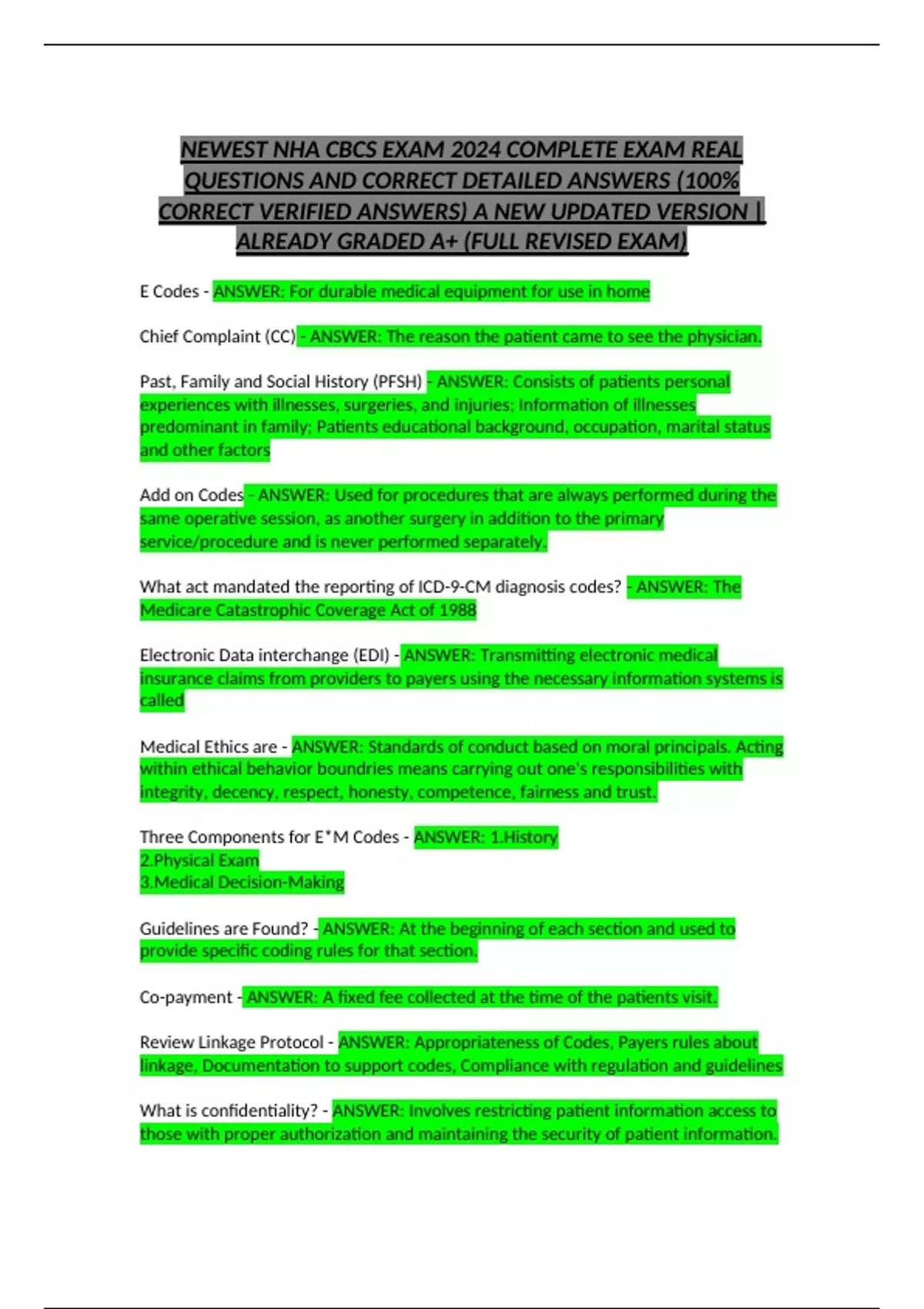 NEWEST NHA CBCS EXAM 2024 COMPLETE EXAM REAL