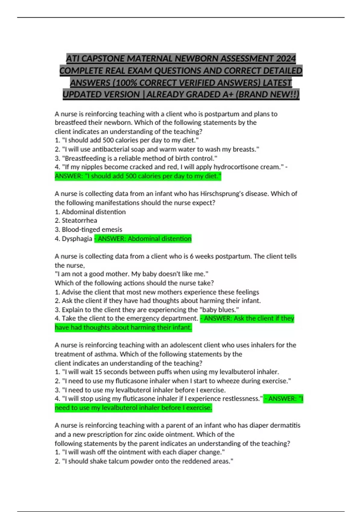 ATI CAPSTONE MATERNAL NEWBORN ASSESSMENT 2024