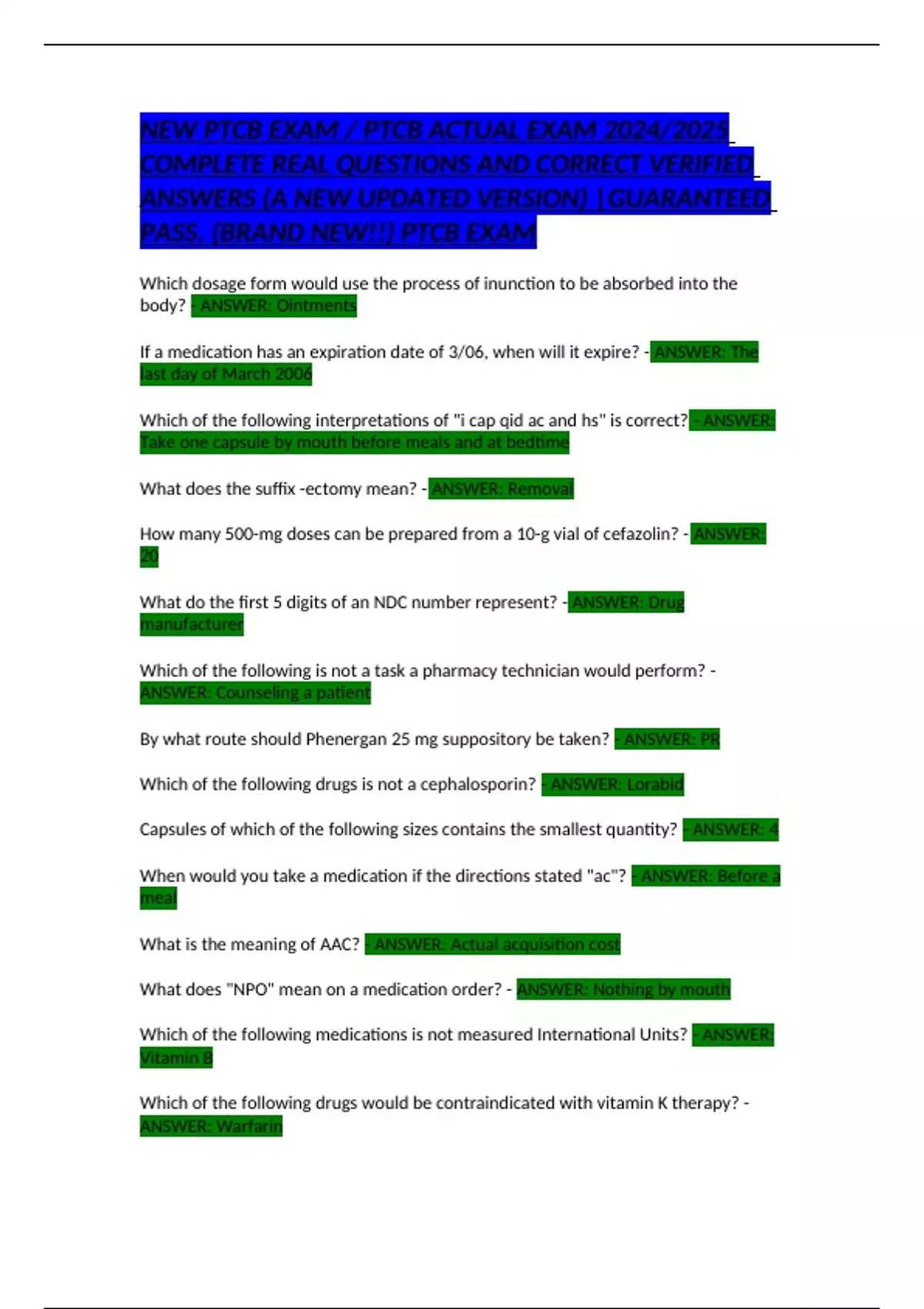 NEW PTCB EXAM / PTCB ACTUAL EXAM 2024/2025