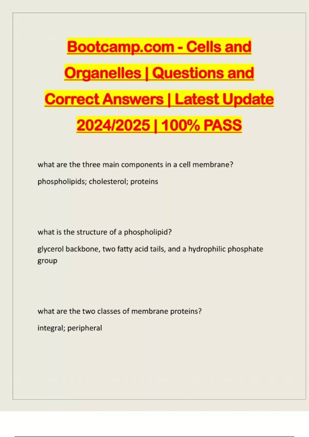 Bootcamp.com - Cells and Organelles | Questions and Correct Answers | Latest Update 2024/2025 | 100% PASS