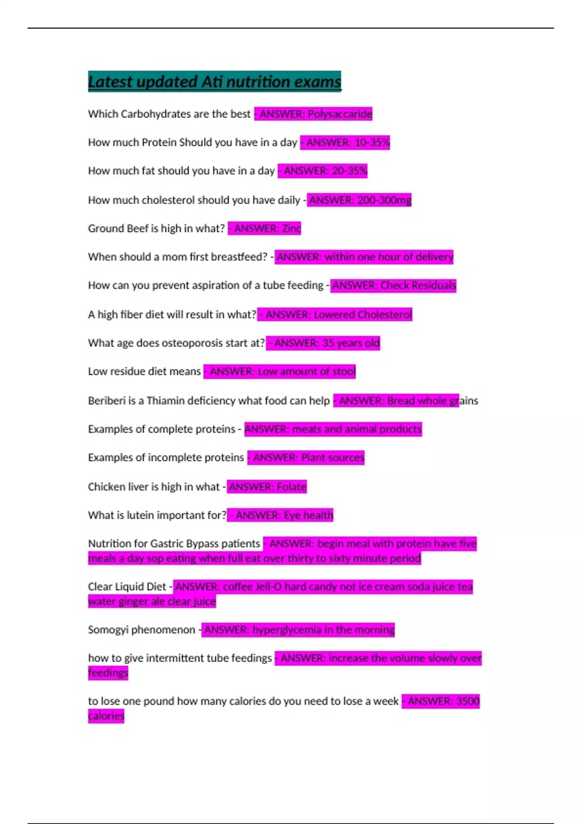 A high fiber diet will result in what? - ANSWER: Lowered Cholesterol