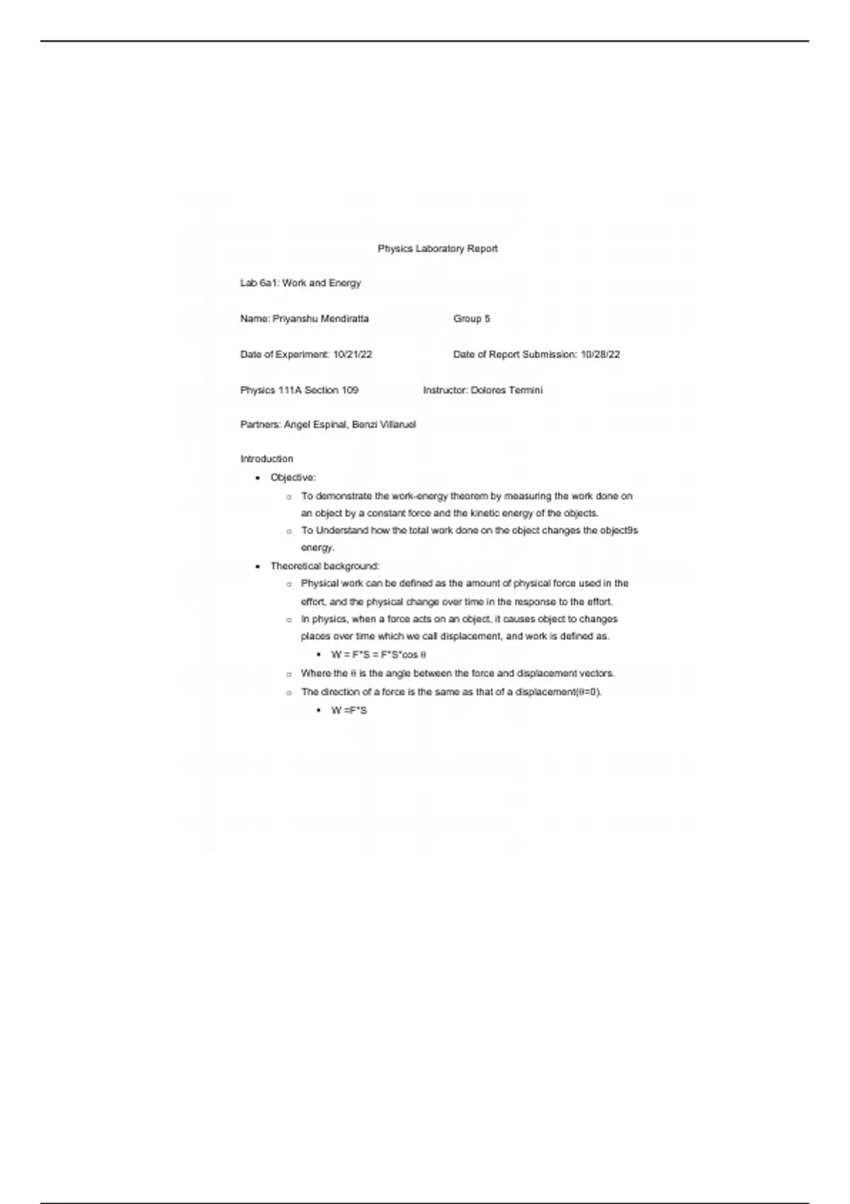 This is a comprehensive and detailed lab report on; Work and Energy for Phys 111A. ***An Essential Study Resource!!