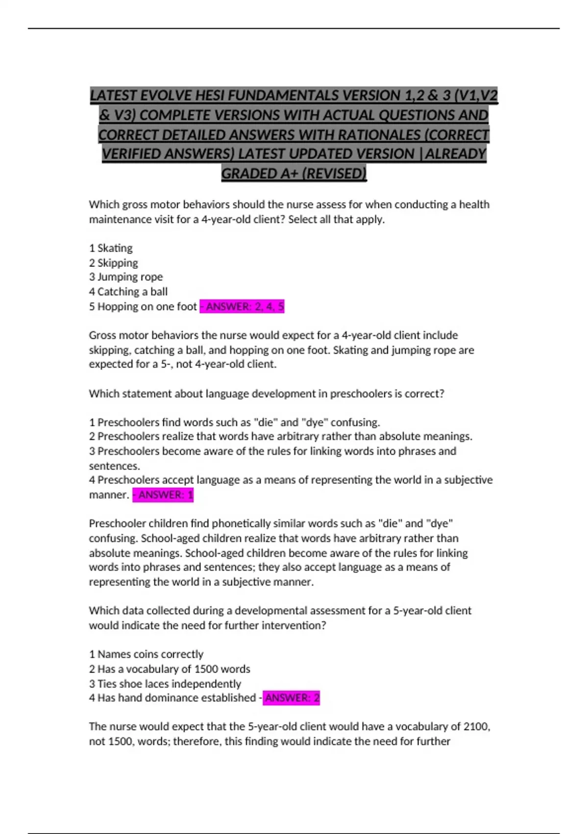 LATEST EVOLVE HESI FUNDAMENTALS VERSION 1,2 & 3 (V1,V2
