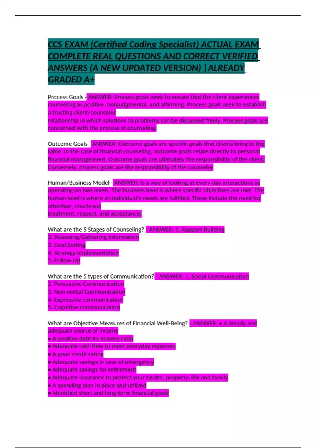 CCS EXAM (Certified Coding Specialist) ACTUAL EXAM