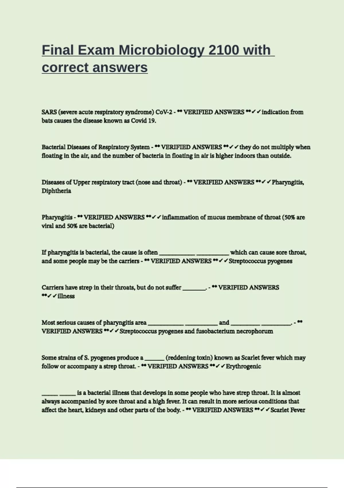 VERIFIED ANSWERS **✔✔Streptococcus pyogenes and fusobacterium necrophorum
