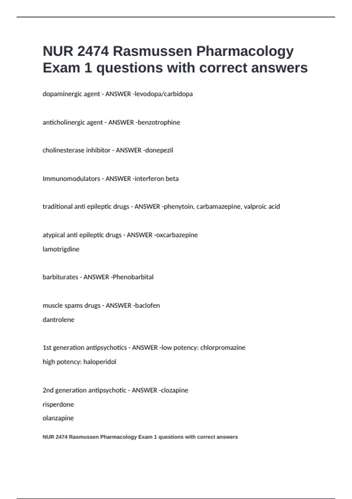 NUR 2474 Rasmussen Pharmacology Exam 1 questions with correct answers