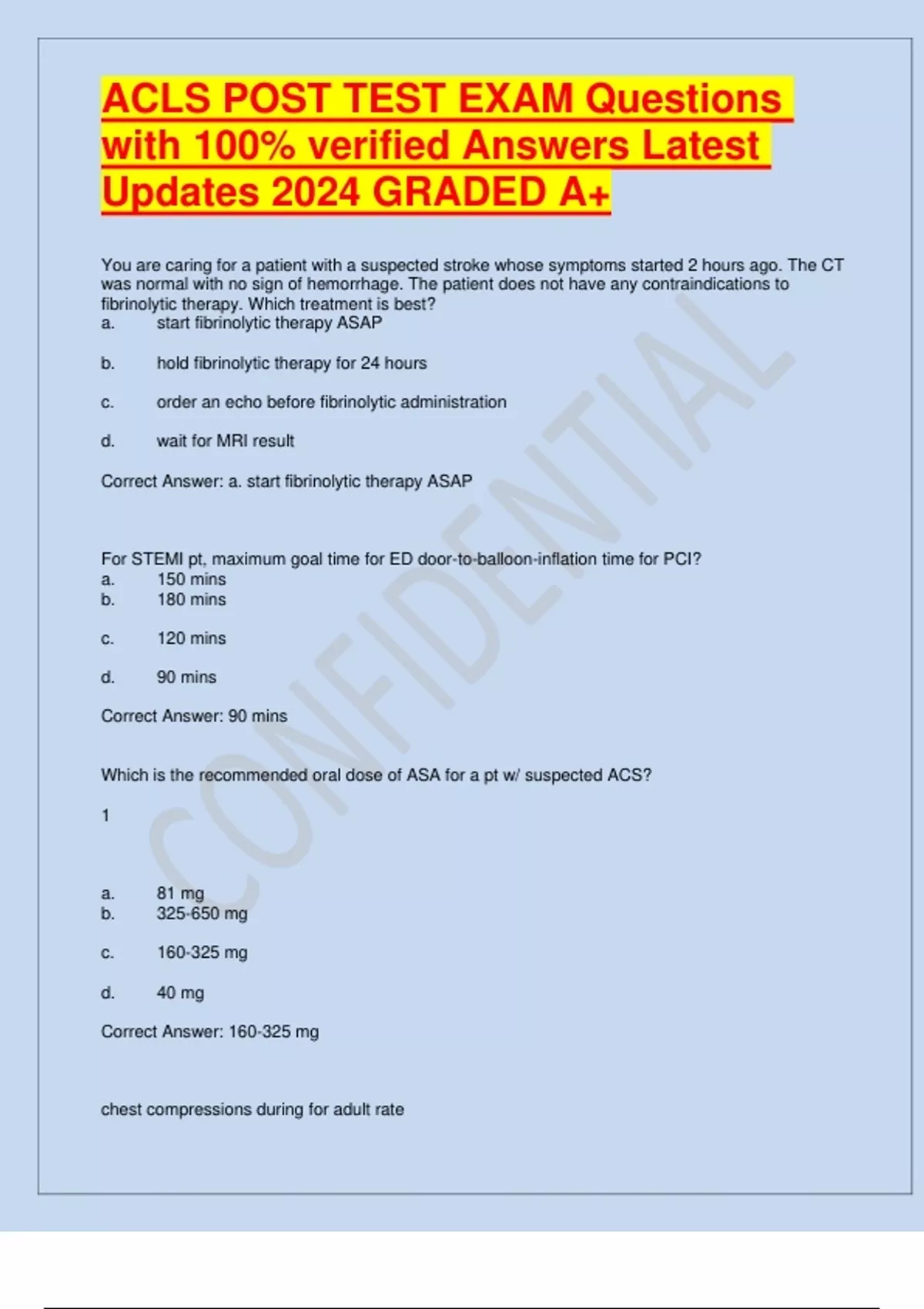 ACLS POST TEST EXAM Questions