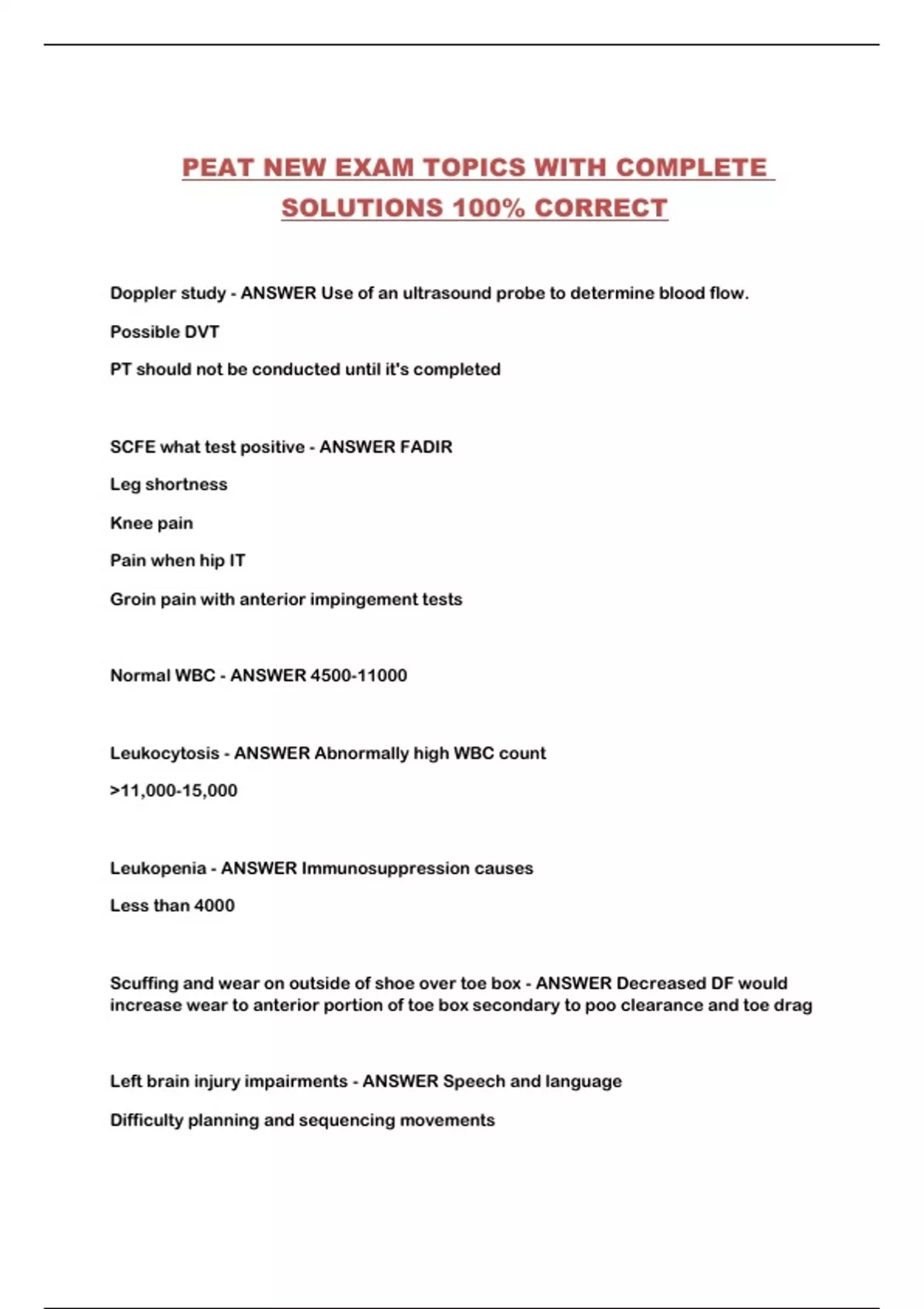 PEAT NEW EXAM TOPICS WITH COMPLETE