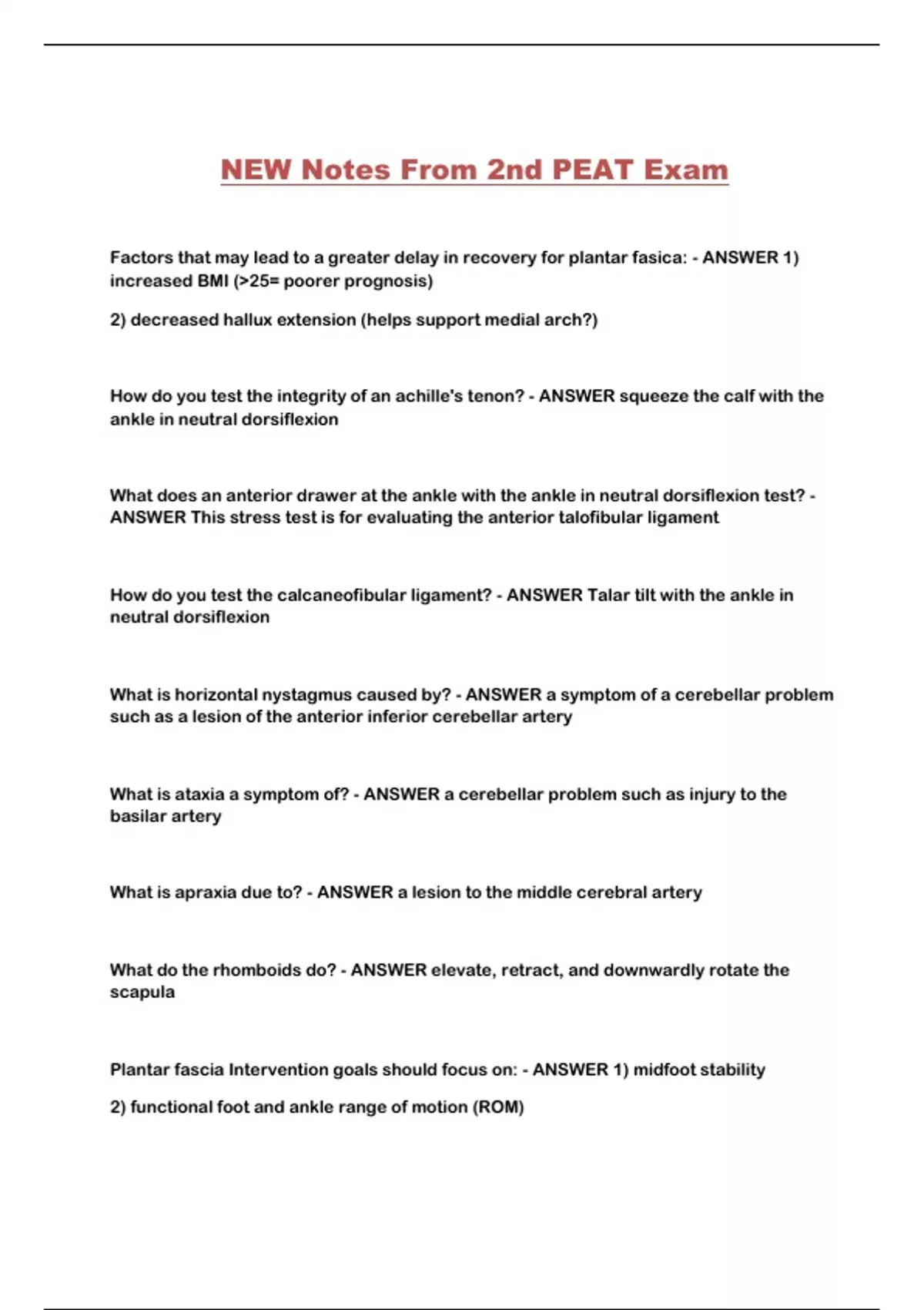 NEW Notes From 2nd PEAT Exam