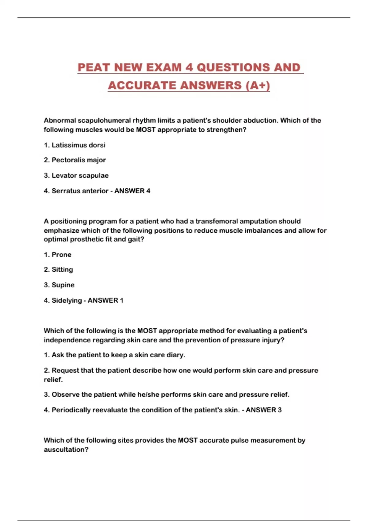 PEAT NEW EXAM 4 QUESTIONS AND