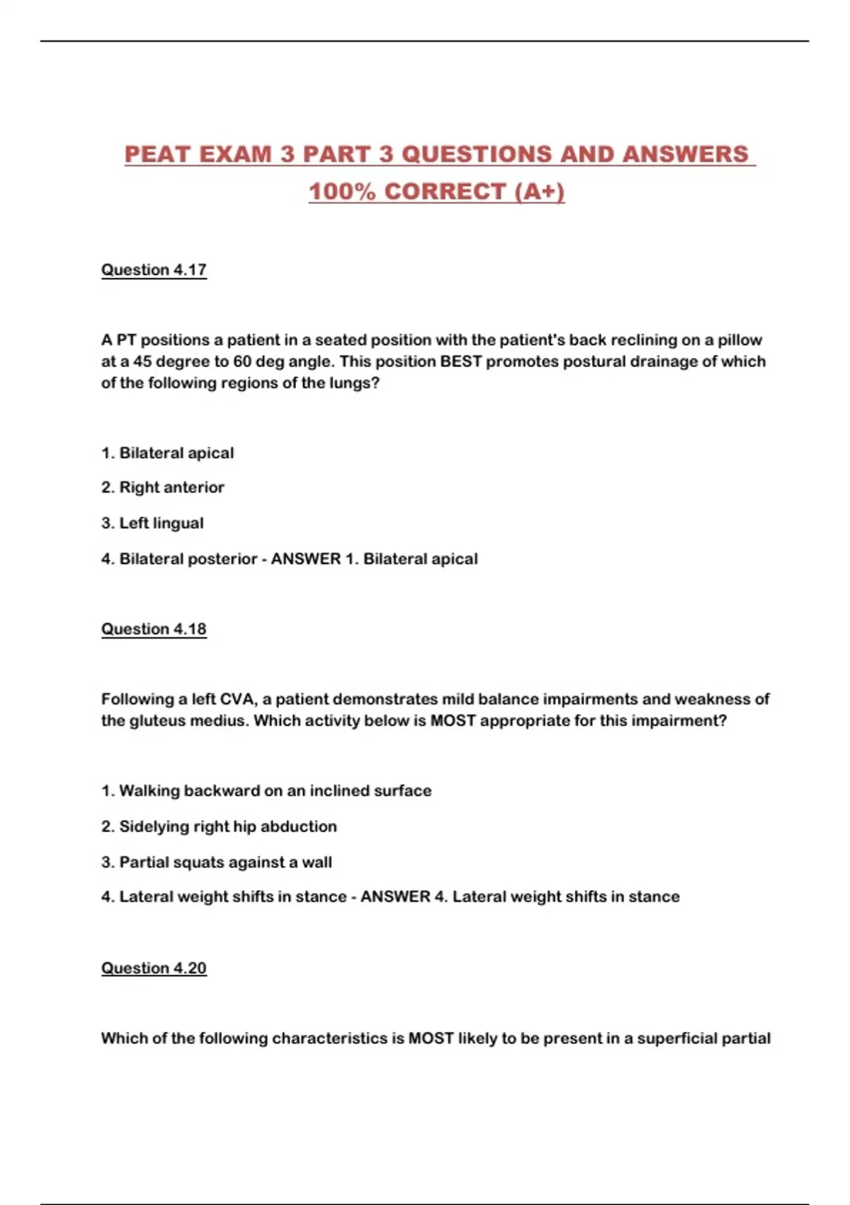 PEAT EXAM 3 PART 3 QUESTIONS AND ANSWERS
