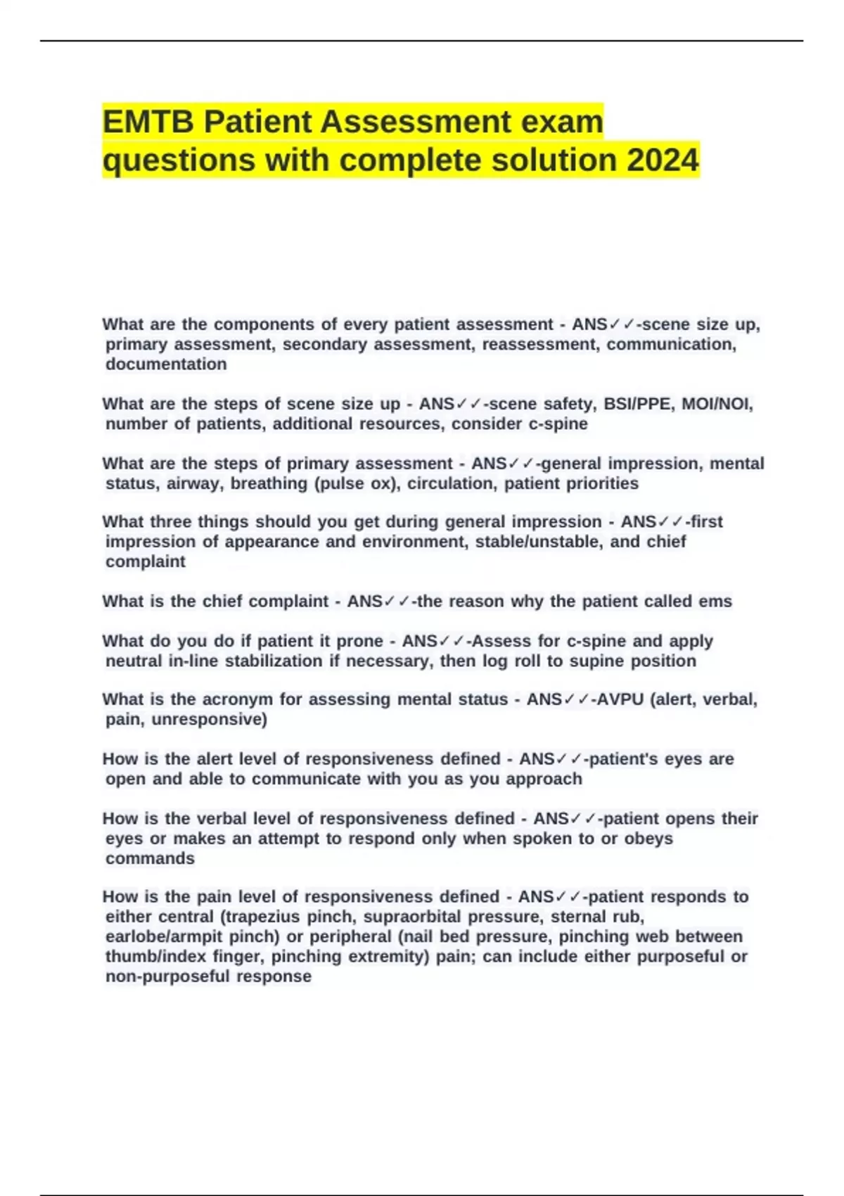 What jis jthe jacronym jfor jassessing jmental jstatus j- jANS✓✓-AVPU j(alert, jverbal,