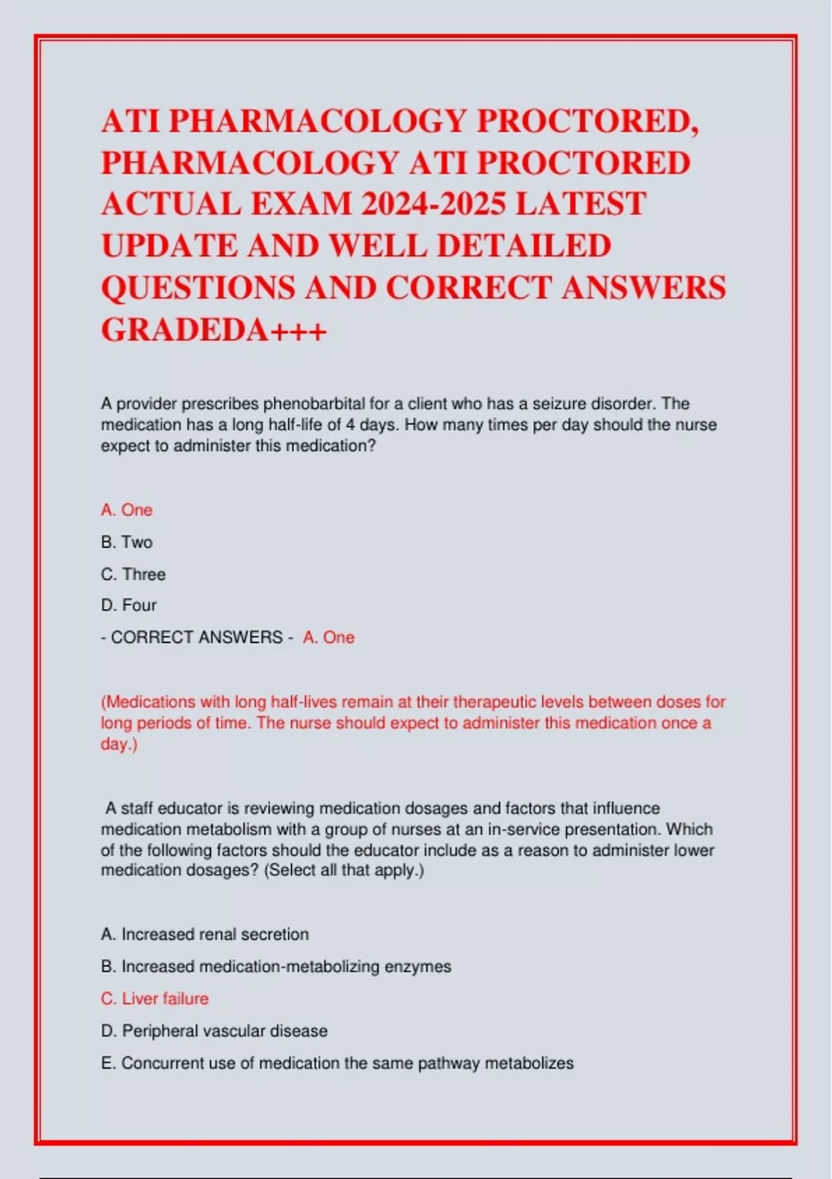 ,- CORRECT ANSWERS - C. Liver failure
