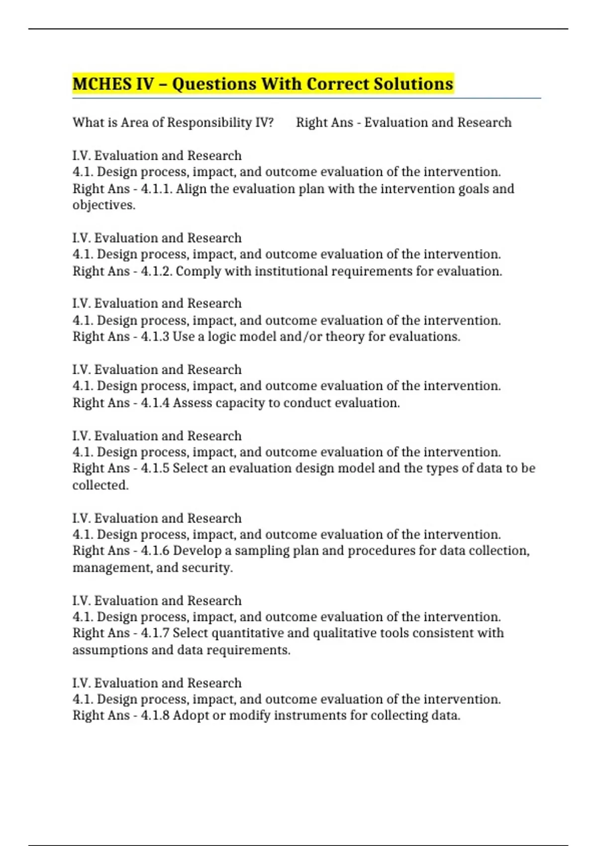 MCHES IV – Questions With Correct Solutions