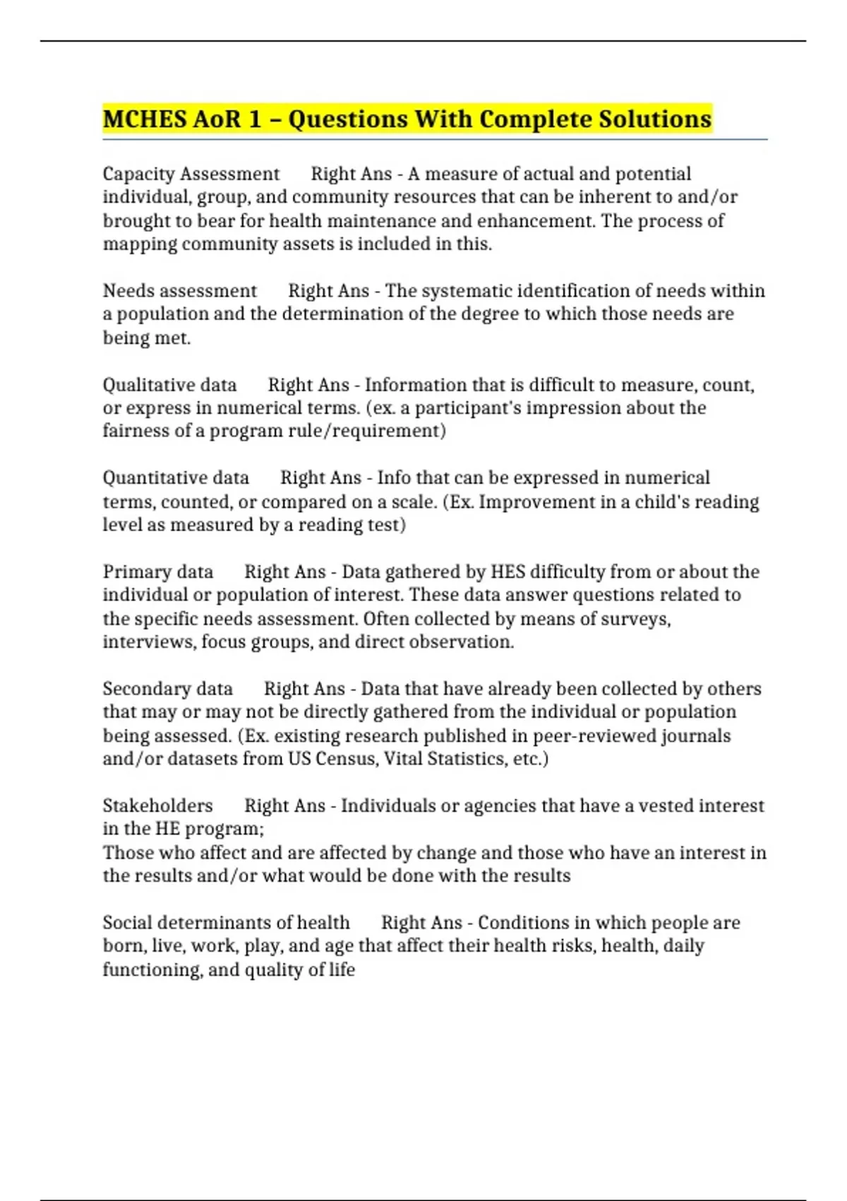 Needs assessment Right Ans - The systematic identification of needs within