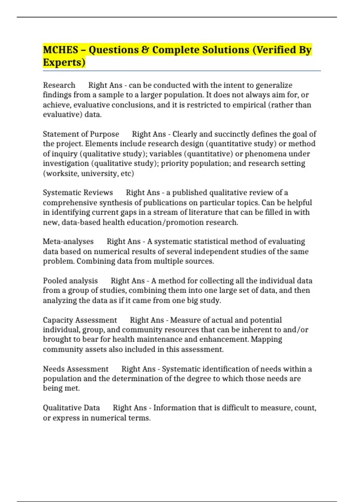 MCHES – Questions & Complete Solutions (Verified By Experts)